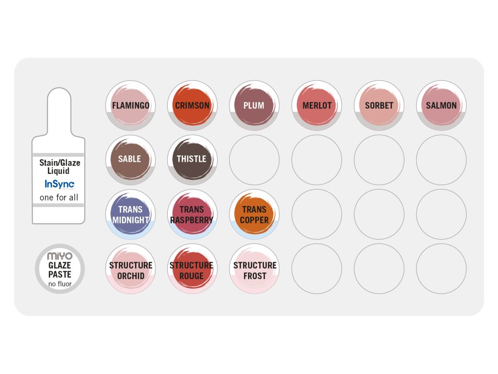 MiYO Pink Kit je kompletní gingivální sada tekuté keramiky pro realistickou reprodukci měkkých tkání – hloubky, vitality a jemné textury. Systém je navržen pro práci v ultratenké vrstvě 0,1–0,2mm, takže se hodí jak na monolitické práce, tak i pro charakterizaci fazetovaných konstrukcí. Díky nízkým vypalovacím teplotám a jasnému protokolu se dobře integruje do běžného laboratorního workflow.