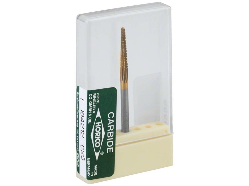 Tvrdokovová fréza s titanovou vrstvou - kónus zakulacený. Průměr 2,3 mm.